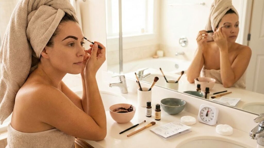 Understanding the fundamentals is essential for successful at-home eyebrow tinting. Selecting a shade that closely matches your natural brow color helps prevent noticeable mistakes and maintains a natural brow appearance. Performing a patch test before application supports skin safety and reduces the risk of irritation. Brows should be clean and free from oil or makeup so the tint applies evenly and delivers smooth color. Using a small amount of product and carefully following timing instructions helps avoid over-darkening, which is key for achieving soft everyday brows.