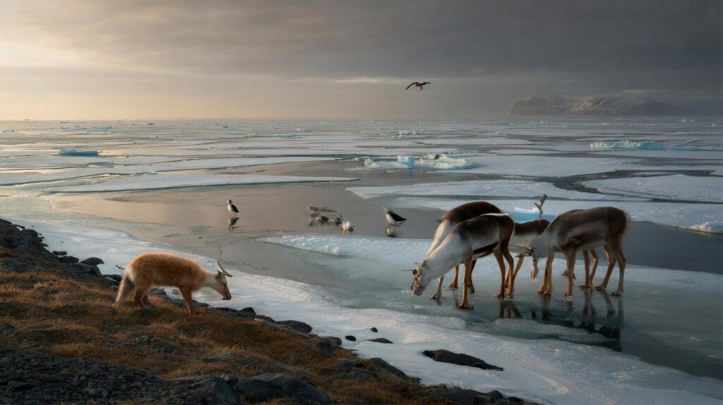 A few miles away, a herd of reindeer paced along a ridge, stopping at patches of ice‑locked ground where lichen used to be easy winter food. The rain had frozen into a cement layer overnight. One of the scientists watching muttered: “This is the tipping point, right here.”