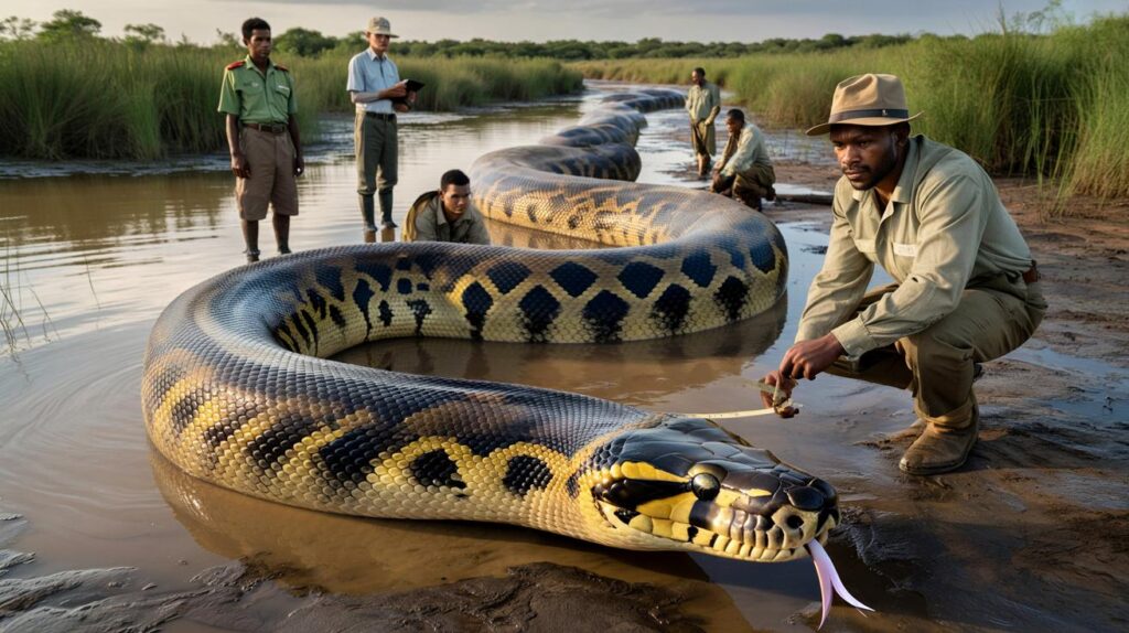 They recorded GPS coordinates, air temperature, water depth. GoPros whirred. Drones hovered overhead. The first loose estimate put the snake at well over six meters, maybe more, with a weight edging into humanly-unliftable territory. Later, under controlled handling and sedation, the numbers were confirmed and logged with almost ceremonial care. A field myth had just crossed the line into peer-reviewed reality.