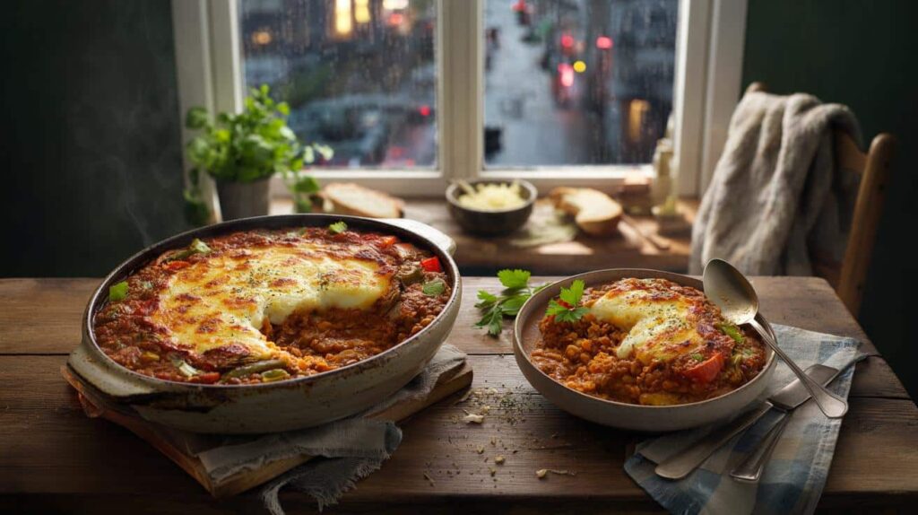 By the time you sit down with a deep bowl and a spoon, something has shifted. The lentils are tender, the sauce thick, the cheese bubbling and slightly crisp at the edges. The dish is simple, but the feeling isn’t. Your blood feels heavier, in a good way, and the world outside the window seems a bit less aggressive.