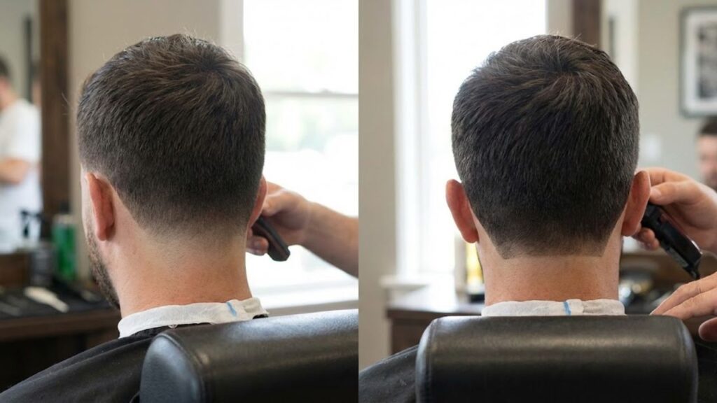 The request is simple. Sit down, point to your neck, and say, taper the neckline instead of a hard line so it grows out natural. Most barbers immediately understand. You’re asking them to blend gradually, not carve a single edge. If that feels awkward, say you don’t want a boxy back and prefer a softer fade. If they ask “rounded or squared,” remember that’s about shape, not blending. You can have a squared neckline that’s tapered or a rounded one that’s sharply edged. The difference lives in the gradient, not the outline.