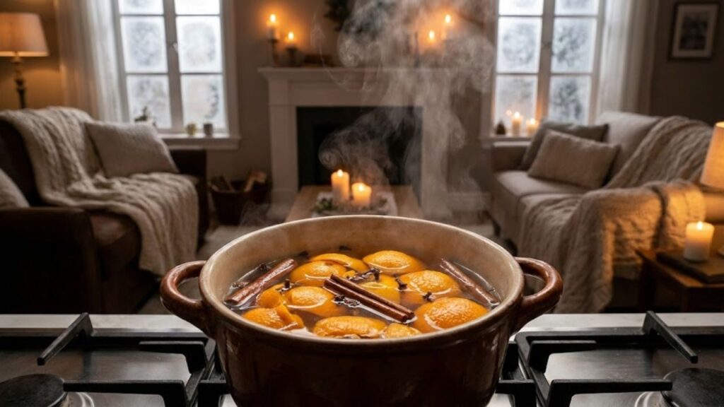 You follow the fragrance into the kitchen. On the stove, a small pot sends up soft wisps of steam, releasing gentle waves of citrus warmth. There’s no candle, no diffuser, and no expensive seasonal spray. Just a few orange peels rescued from the compost, resting in quietly boiling water.
