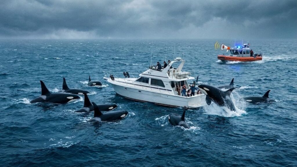 The yacht slowed as it hit the chop off the Spanish coast, the late afternoon sun turning the water copper-orange. On deck, a couple filmed dolphins on their phones, laughing at how close the animals came to the bow. But suddenly, the laughter stopped. A larger black shape surfaced just meters away, stark against the glittering sea. Another followed. The captain’s face changed first. He cut the engine, eyes locked on the tall dorsal fin slicing the waves.